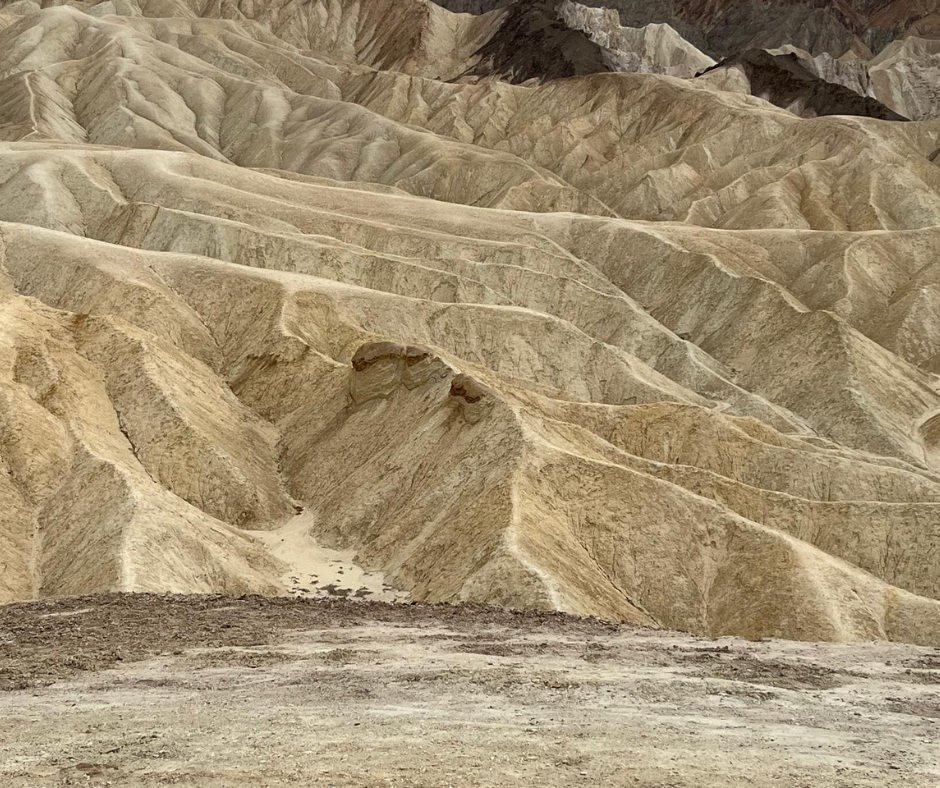 • Zastygły ocean na Zabriskie Point: Złote wzgórza, które wyglądają jak piaszczyste fale, tylko że twarde jak skała. Najlepiej usiąść tam na chwilę i po prostu popatrzeć, jak słońce powoli zmienia ich odcień.